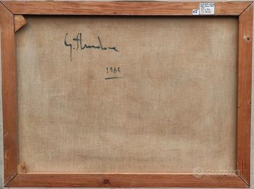 Storico dipinto di Giovanni STRADONE, "Autoritratto con la modella Wanda Tibaldi", olio su tela, cm. 60x80, anno 1965, firmato e datato al retro, autentica notarile su fotografia a cura di Wanda Tebaldi, in bellissima cornice.