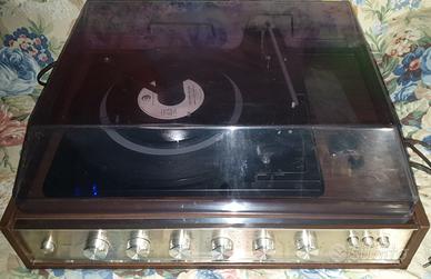 Giradischi vintag anni 70 modello PbF elettronica 3001 BSR in buone condizioni funzionante con uscita x registratore o amplificatore,uscita casse,un ingresso ,con accessori x cambio dischi automatico 33/45/78giri (Avviata la riproduzione cambia automaticamente da 1 a 8 dischi spegnendosi alla fine )il coperchio removibile ha una crepetta di 3 cm nell angolo anteriore destro come in foto