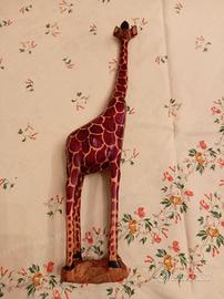 Bellissima realizzazione di giraffa ad opera di artigiani africani con essenze di legno locale. Alta 46 cm Larga 10 cm