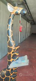 GIRAFFA IN LEGNO PORTA DVD 22 SCOMPARTI, ALTA CIRCA 1,5 MT, ritiro a mano Roma (zona Romanina).