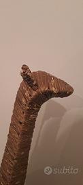 Elemento di arredo in stile etnico, anni 70, realizzato con un'anima in ferro ricoperta di paglia intrecciata e dipinta. altezza 1,10m