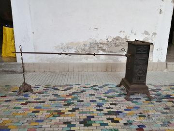 Girarrosto da utilizzare anche nel caminetto. Campanello che avvisa la fine carica. Carica meccanica, manuale. Non occorre corrente elettrica. Funziona ovunque. Disponibile anche video per vedere il funzionamento.