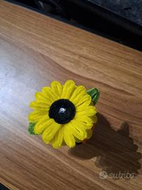 girasole eterno in un simpatico vasetto a forma di gattino realizzato a mano con scovolini fili di ciniglia /fili di ferro pelosi