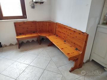 Vendo giro panca in legno di pino massello misure lato lungo 200cmm lato corto 140cm + tavolo in pino massello misura 160x80. Tutto come nuovo mai usato. Trasporto a carico dell' acquirente.