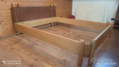 PREZZO RIBASSATO x URGENTE SGOMBERO Giro letto Etnico con testata in vera pelle/cuoio - materiale legno massello - angoli e piedi tondi che alleviano eventuali urti - idoneo per rete standard da cm. 160x190.
