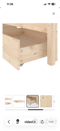 Descrizione Caratterizzato da un design semplice e senza tempo, questo giroletto in legno sarà un complemento d'arredo pratico e decorativo alla vostra camera da letto. Legno massello di pino: Il legno massello di pino è un bellissimo materiale naturale. Il legno di pino ha le venature dritte e i nodi conferiscono al materiale il suo caratteristico aspetto rustico. Doghe robuste: Le doghe in compensato forniscono una buona distribuzione del peso, assicurando che il materasso rimanga in posizione ad ogni movimento del corpo durante il sonno. Funzione di stoccaggio: I cassetti per il letto in dotazione offrono un ampio spazio per stoccare l'essenziale, mantenendo la vostra stanza pulita e in ordine. Dettagli Materiale giroletto: Legno massello di pino (non trattato) Materiale doghe: Compensato Dimensioni: 205,5 x 185,5 x 31 cm (L x P x A) Dimensioni cassetti: 95 x 57 x 18 cm (L x P x A) Dimensioni del materasso adatto: 180 x 200 cm (P x L) (6FT Super King) (il materasso non è incluso) Assemblaggio richiesto: Sì La consegna include: 1 Giroletto 4 Cassettoni sotto letto EAN:8720287012245 SKU:3103528 Brand:vidaXL NON SPEDISCO SOLO RITIRO DI PERSONA PAGAMENTO PER CONTANTI