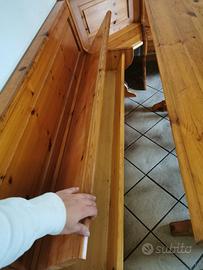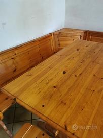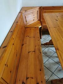 Vendo giropanca angolare con contenitore munito di tavolo e n. 3 sedie. Legno di pino. Dimensioni giropanca: Lunghezza 205 cm Altezza 135 cm Dimensioni tavolo: Lunghezza 150 cm Altezza 80 cm Preferibile ritiro in loco o dintorni (Rovereto)