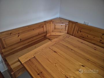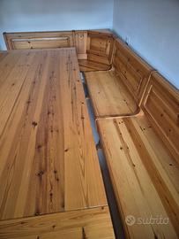 Giropanca completo + tavolo + 6 sedie + mobile Stereo tutti in legno di pino massello in ottimo stato di conservazione. Trasporto/spedizione a carico dell'acquirente