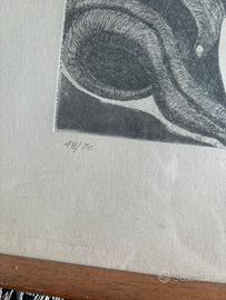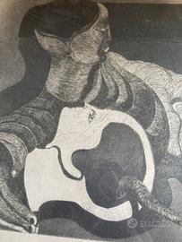 Giulio Ciniglia, stampa originale numerata e firmata in perfette condizioni. Cornice realizzata su misura in legno, anch’essa in perfette condizioni. Stile chiaramente influenzato dalla metafisica e dal Guernica di Picasso. Dimensioni 71 x 52 x 4 cm. Per ulteriori informazioni non esitate a contattarmi