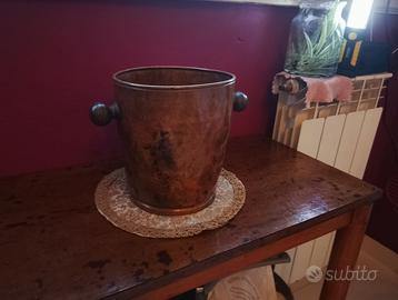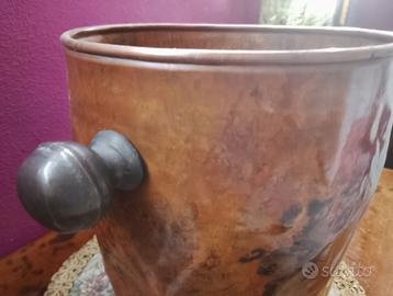 Glassette in rame con pomelli in ottone. Misure Ht. 22 cm. diametro 19 cm