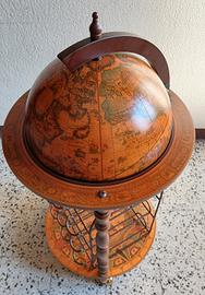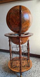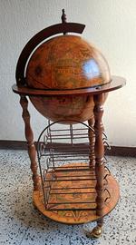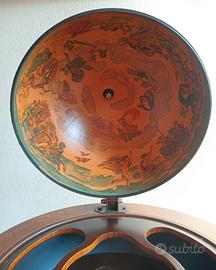 globo bar in legno con sfera apribile porta bicchieri e griglia per 9 bottiglie