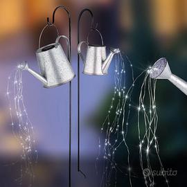 Qualsiasi giardino può essere decorato con questa efficace lampada LED solare. L'annaffiatoio in metallo, che pende da un alto picchetto a terra, è dotato di ghirlanda luminosa LED che imita il getto dell'acqua e si illumina e sfarfalla con grande effetto.