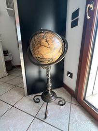 Elegante globo terrestre vintage montato su struttura in metallo, ideale come complemento d’arredo per salotti, studi o ambienti dallo stile classico ed elegante.