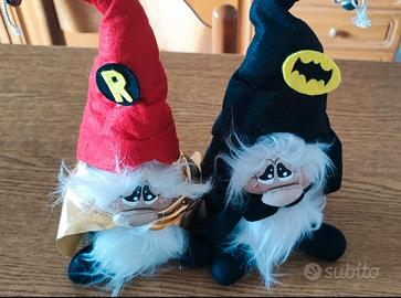 Coppia di gnomi Batman e Robin fatti a mano circa 25cm di altezza