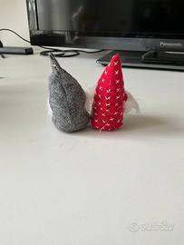 •Materiali: Realizzati con tessuti morbidi come feltro e cotone, con barba in pelliccia sintetica e un naso in legno. Il cappello del gnomo grande è decorato con paillettes.