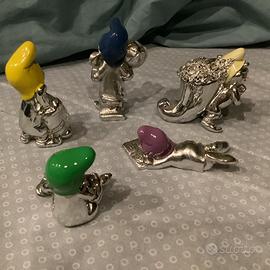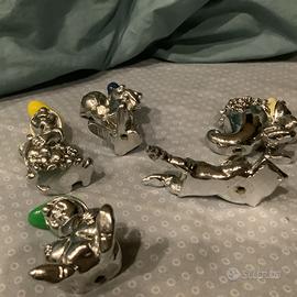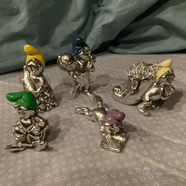 Bellissimi, simpatici questi 5 folletti in ottimo stato, in resina, bagnati in Argento, con smalti.