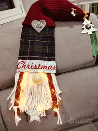 Gnomo natalizio artigianale alto 60 cm con led integrato tutto fatto a mano