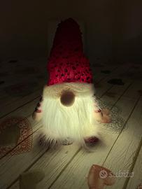 Simpatico gnomo natalizio con luce calda led. Ideale come decorazione per la casa o centro tavola di natale