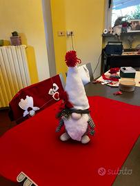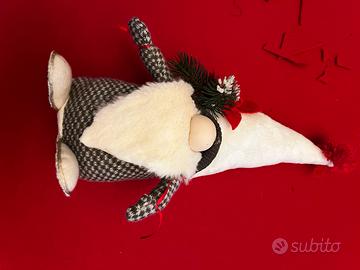 Questo simpatico gnomo è realizzato interamente a mano da mia nonna, una sarta in pensione che da oltre cinque anni crea decorazioni natalizie uniche con tanta passione e cura per i dettagli.