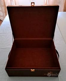 Scatola in vera pelle con cuciture a contrasto Godiva color cioccolato.
