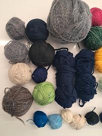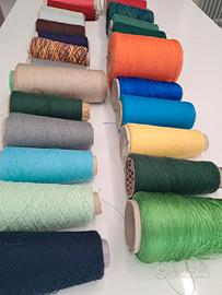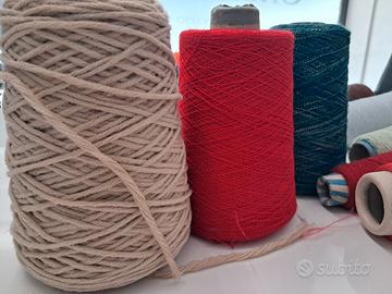 Gomitoli e bobine di cotone e lana in parte usati in parte nuovi. Vendo in blocco.