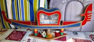Gondola veneziana con felze misure cm 60x22 completa di luce interna funzionante finemente realizzata a mano struttura lignea con rivestimento in velluto nei vari colori compresa di tendine nei due vani per schermare la luce conservata con cura nel tempo visibile al villaggio olimpico roma nord spedizioni ovunque