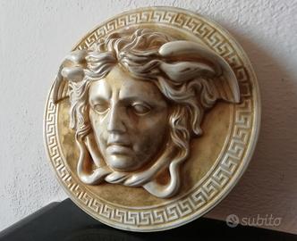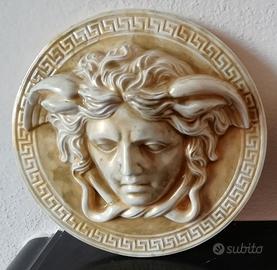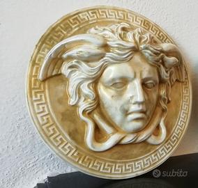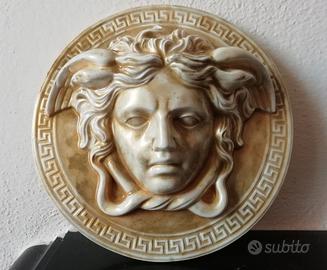 Pezzo unico! Scultura della mitologia di Medusa, "protettrice", "guardiana di dimora". La Gorgone Medusa, modello con antica greca in stile tipo Versace, pronta da appendere con aggancio sul retro, in purissimo gesso alabastro, rifinitura tipo smaltata, colore dorato oro élite, con sfumature colore avorio e ori, come da foto. La scultura ha come diametro 19 cm. Questa scultura proviene dalla mia collezione privata, è un opera che ho acquistato durante i miei viaggi, sempre esposta nella mia sala, è nuova e intatta come quando l'ho acquistata. Si precisa che il cambio di colore nelle foto è dovuto semplicemente al tipo di luce solare nel momento dello scatto fotografico. Prezzo ribassato!!