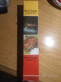 VENDO NUOVO MAI USATO Gourmet set Shish Kebab , COMPLETO DI SEI SPIEDINI MISURE CM 27 X CM 39 , FACILISSIMO DA MONTARE FACILISSIMO DA PULIRE, DA OGGI PUOI CUCINARE ALL'APERTO CON QUESTO FANTASTICO PRODOTTO .
