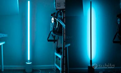 Vendo Govee Lyra; non spedisco. Caratteristiche come di seguito: Tecnologia LED: RGBICWW (RGB + Warm White + Cool White) con segmenti controllabili individualmente Luminosità: fino a 1500 lumen Temperatura colore: 2200 K – 6500 K Connettività: Wi-Fi 2.4 GHz + Bluetooth Controllo: App Govee Home, voce (Alexa, Google Assistant), telecomando magnetico Modalità: 64 scene preimpostate + 6 modalità musica reattive (con microfono integrato) Dimensioni: 13,7 × 13,7 × 140 cm Alimentazione: AC 110-240 V