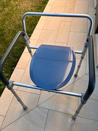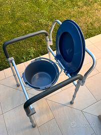 * E' dotata di seduta in polietilene con un foro copri seduta e un secchio in plastica estraibile. Possiede un paio di poggia braccia imbottiti in poliuretano morbido per garantire il massimo comfort. I puntali in gomma sono antiscivolo per garantire il massimo della sicurezza.