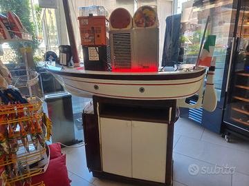 Il gozzo è in vetroresina, le restanti parti in solido legno ((potete vedere in foto il peso del doppio granitore e dello spremiagrumi (oggetti non in vendita) che riesce tranquillamente a reggere)).