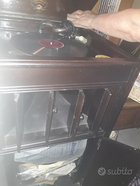 Grammofono inizio 900 funzionante Dimensioni 50x50x115 In più circa un 60 dischi da valutare il prezzo per ogni disco. Indicativamente 50-100 euro a disco