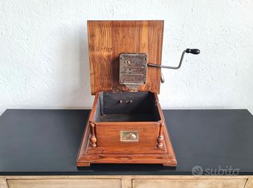 💫 Grammofono a manovella in stile antico, con cassa in legno e grande tromba decorata. Un oggetto di grande impatto estetico, perfetto come pezzo d'arredo vintage, per ambienti retrò, locali, vetrine o collezionisti. L'oggetto essendo ad oggi ideale per uso decorativo, viene venduto come complemento d'arredo. Perfetto per chi cerca un oggetto iconico che richiami il fascino della musica d'altri tempi. ✨ Un oggetto decorativo che unisce eleganza, storia e divertimento. 📏 Dimensioni: base quadrata, lato 35 cm, alt. 18.5 cm; altezza considerata la tromba circa 74; diametro tromba 47 cm. 📍 Ritiro in prov. di Roma. 🚚 Possibilità di spedizione, consegna a domicilio, previo pagamento. 🏷️ Prezzo 175 euro. 🔑 Keywords: Arredamento, complemento d'arredo, decorazione, ornamento, casa, ingresso, salone, salotto, soggiorno, sala da pranzo, camera, stanza, studio, ufficio, negozio, locale, loft, modernariato, design, vintage, retrò, antico, antiquariato, epoca anni 30, 40, 50, 60, 70, primi del 900, fatto a mano, artigianato, artigianale, oggetto decorativo, idea regalo, collezione, collezionismo, oggettistica, macchina da cucire antica, grammofono vintage, grammofono a manovella, riproduzione ispirata allo storico grammofono, phonograph, radio d'epoca, musica d'epoca, oggetto scenografico.