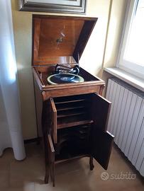 Grammofono in legno perfettamente funzionante Grand Cabinet His Master Voice del 1909 con 8 dischi dell'epoca. Non presenta difetti di nessun tipo, ben conservato nel tempo.