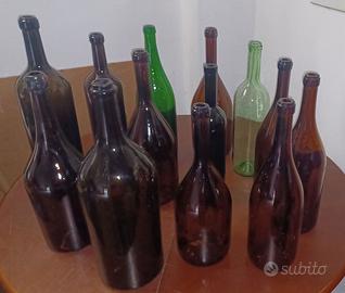 GRAN LOTTO N. 13 BOTTIGLIONI VUOTI VINO VINTAGE - VARIE MISURE E FORME (1 MARCATA ALBEISA) - DAL 1,5 A 7/8 LITRI - VETRI CHIARI, VERDI E MARRONI - SOLO RITIRO A MANO - NON SPEDIBILI - CONSEGNA DIRETTA SU ACCORDI ENTRO I 50 CHILOMETRI DA BISTAGNO (AL)