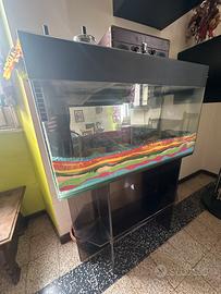 Grande acquario in vetro con base in vetro. Vintage, con neon da sostituire e motore funzionante. Da rimettere a nuovo visto il non utilizzo.