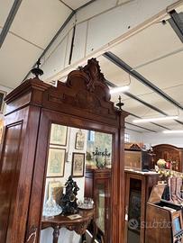 GRANDE ARMADIO IN LEGNO CON SPECCHIO E DECORAZIONE CIMASA ALTEZZA: 245 CM LUNGHEZZA: 110 CM PROFONDITA’: 55 CM