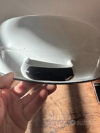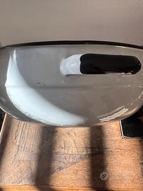 Vendo,per liberare spazio,grande catinella/bacinella in metallo smaltato bianco con bordo nero, originale vintage prodotta in Yugoslavia. Oggetto solido, capiente e molto versatile. • Condizioni: Molto buone, smalto bianco lucido e ben conservato. Presenta i classici segni del tempo che ne autenticano l'originalità vintage. • Uso: Perfetta per lavaggio biancheria a mano, come contenitore rustico in cucina, o come elemento d'arredo per contenere piante e fiori in giardino o in casa stile Shabby Chic. • Dimensioni: Diametro [30 cm]. Disponibili anche altri pezzi in metallo smaltato vintage (pentole e bacinelle) della stessa serie. Guarda gli altri miei annunci!