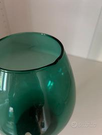 Vendo uno splendido e raro calice gigante in vetro soffiato di Empoli, Italia, originale degli anni '60. Questo pezzo di design Mid-Century Modern, noto anche come "brandy snifter" oversize, è caratterizzato da un vibrante colore verde smeraldo e un'elegante forma a palloncino (balloon).