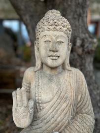 Elegante scultura balinese fatta a mano in pietra naturale, raffigurante il Buddha in meditazione con Vitarka Mudra, simbolo di saggezza e insegnamento. Perfetta per giardini zen, terrazze o interni dallo stile orientale/spirituale. Resistente, autentica e adatta anche all’esterno.