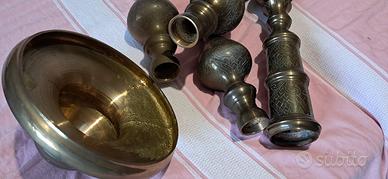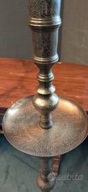 Grande candelabro vintage in ottone inciso, con vassoio antigoccia.