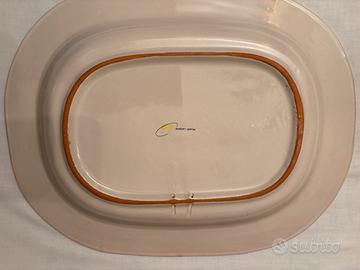 Vendo uno splendido e ampio piatto da portata,perfetto per servire in tavola con eleganza o come elemento decorativo di grande impatto. La decorazione è ricca e minuziosa, tipica della migliore tradizione ceramica italiana.