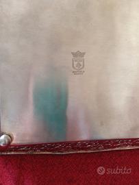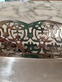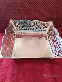 Ciotola in Sheffield intarsiata con bellissima lavorazione ai lati e all ' interno 25 cm. x 25 .