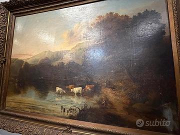 Vendo grande dipinto antico della seconda metà dell’800, olio su tela cm 106x152 con cornice coeva originale.