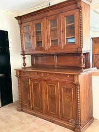 Grande dispensa in legno di noce massello . Misura Lunghezza 190 Altezza 248 Profondita' 61 la base Profondita' 35 la vetrina.