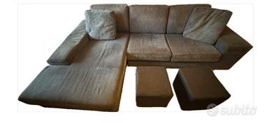 Divano 4/5 posti in microfibra acquistato da Ovvio, in buone condizioni e con sedute molto comode, presenti piccoli segni di usura, completamente sfoderabile e lavabile.