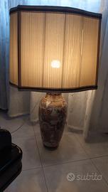 Lampada da salotto con la base in ceramica ricamata a mano stile Satsuma alta 46 cm. paralume 50 cm. decorazioni ricche di dettagli con dorature un rilievo -Craquele' tipico delle decorazioni orientali . Bel paralume sono evidenti i segni del tempo. Lampada funzionante si accende quando si inserisce la spina.