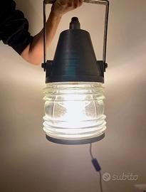 Grande lampada faro marina primo 900 art deco in ghisa di alluminio e vetro soffiato, completamente restaurata ed elettrificata, ottime condizioni vintage.