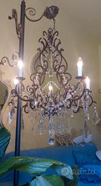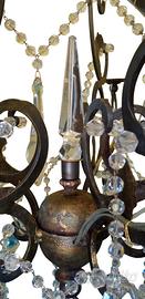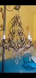 lampadario primi 900 in ferro battuto con collane in vetro e cristalli rispolverato cinque luci attacco E14 nuovo impianto elettrico diametro cm 80 altezza struttura compresa di ultimi pendenti cm 80 più catena e rosone solo ritiro a mano in zona