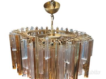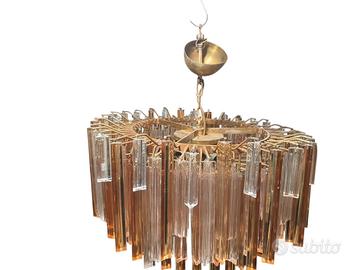 grande lampadario modello triedri ambra e trasparente varie misure manifattura italiana murabo design anni 60 stato consrvatico buono misure h50x60 vetri tutti dispombili un paio di ricambio